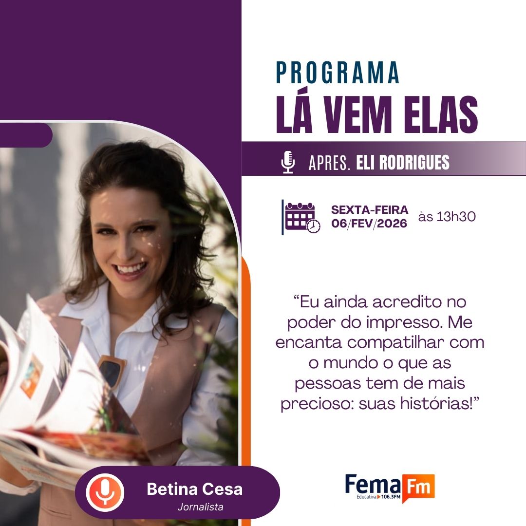 O programa Lá Vem Elas, no seu quarto ano de execução, reforça seu compromisso em evidenciar o universo feminino para toda a sociedade! É sobre elas, para todos!